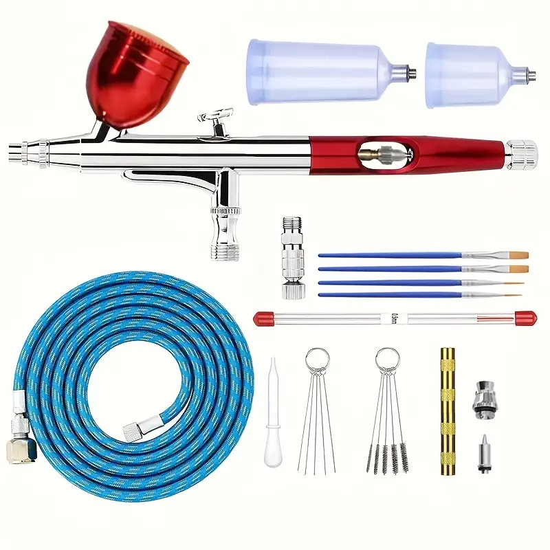 Airbrush Set] 17pcs Airbrush Set with Dual-Action Gun | 0.3mm Needle Tips, 7cc & 20cc Replacement Cups, Easy-to-Use Nozzle Design for Smooth Application