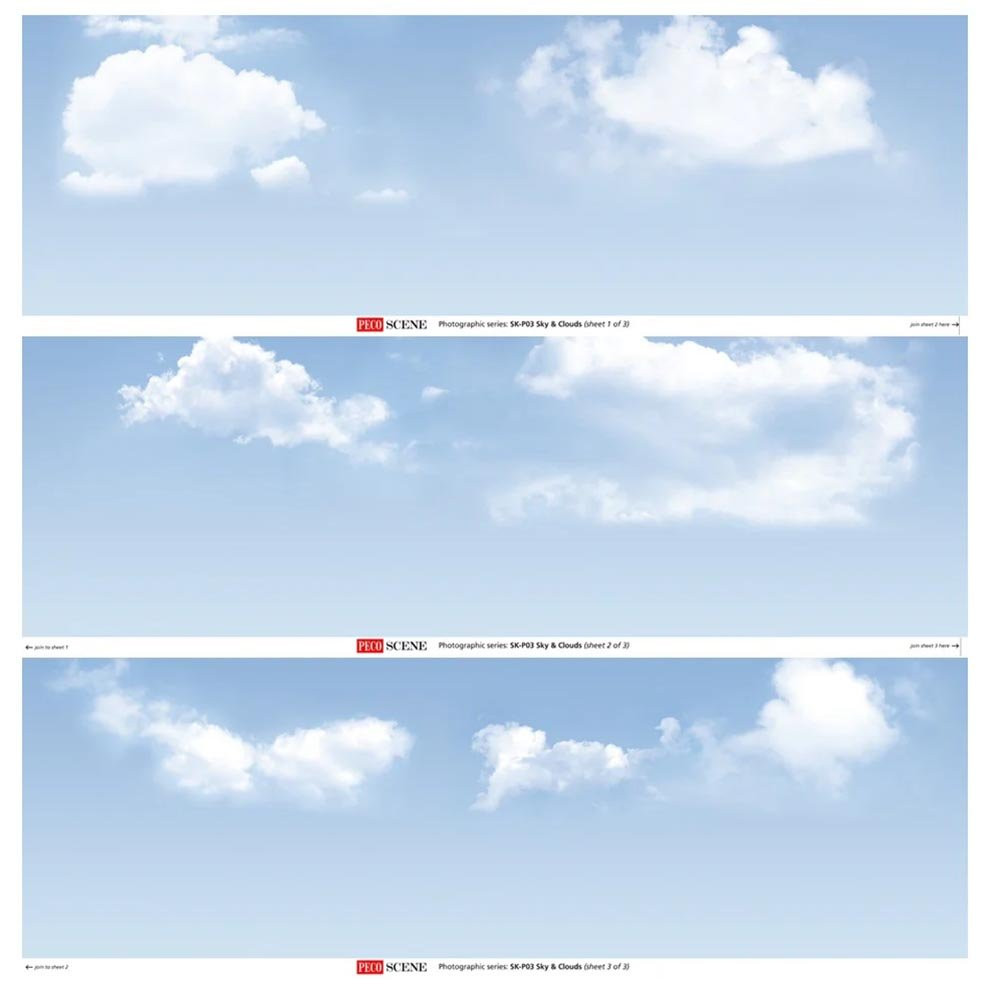 Supplied in a square-section tube, the three separate sheets will match perfectly together to form a continuous run of 2400mm (95in), and reaching to a height of 333mm (13in). Future backscenes will match at either end allowing longer runs of scenery throughout the full length of a layout.